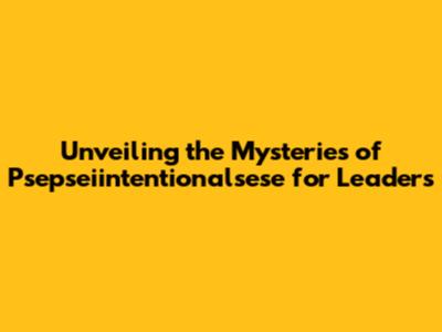Unveiling The Mysteries Of Psepseiintentionalsese For Leaders