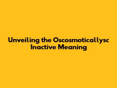 Decoding "Oscosmoticallysc Inactive": What Does It Mean?
