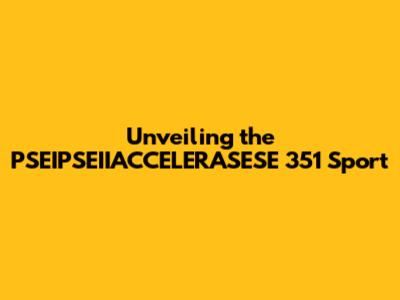 Unveiling The PSEIPSEIIACCELERASESE 351 Sport