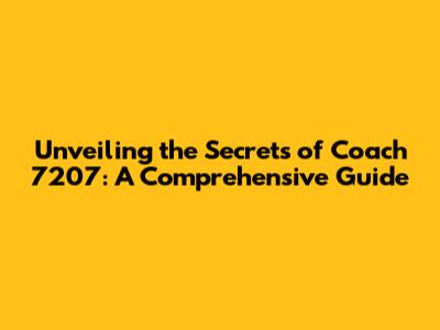 Unveiling The Secrets Of Coach 7207: A Comprehensive Guide