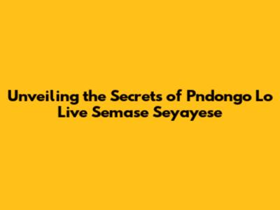 Unveiling The Secrets Of Pndongo Lo Live Semase Seyayese
