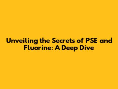 Unveiling The Secrets Of PSE And Fluorine: A Deep Dive