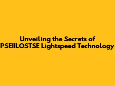 Unveiling The Secrets Of PSEIILOSTSE Lightspeed Technology