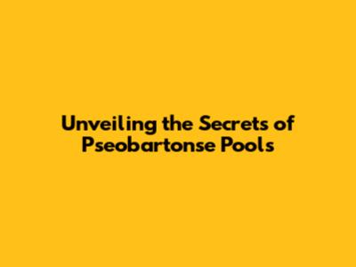 Unveiling The Secrets Of Pseobartonse Pools