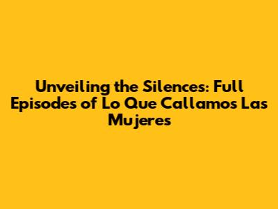 Unveiling The Silences: Full Episodes Of 'Lo Que Callamos Las Mujeres'