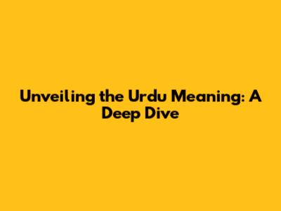 Unveiling The Urdu Meaning: A Deep Dive