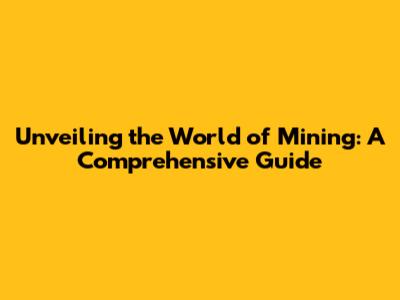 Unveiling The World Of Mining: A Comprehensive Guide