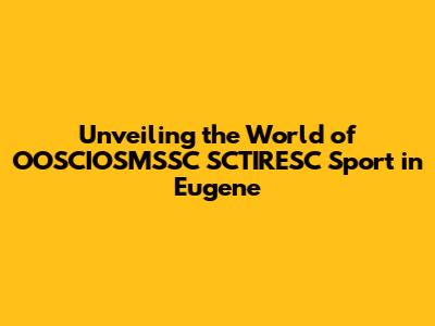 Unveiling The World Of OOSCIOSMSSC SCTIRESC Sport In Eugene