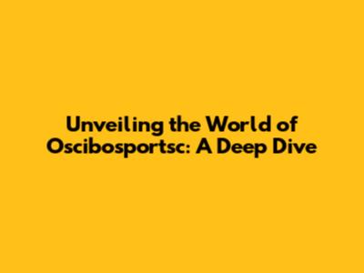 Deep Dive into the Various Facets of Oscibosportsc