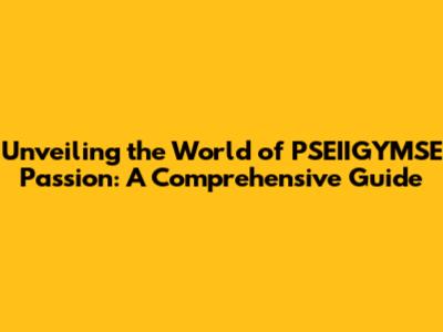 Unveiling The World Of PSEIIGYMSE Passion: A Comprehensive Guide