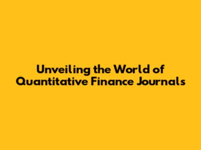Unveiling The World Of Quantitative Finance Journals