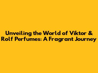 Unveiling The World Of Viktor & Rolf Perfumes: A Fragrant Journey