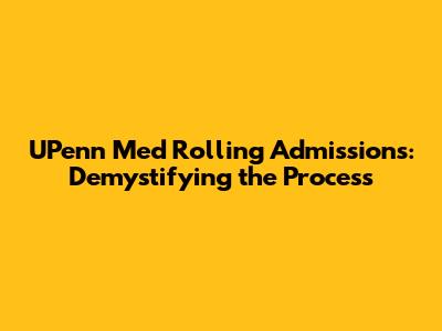 Does UPenn Med Have Rolling Admissions?
