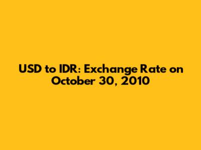 Hey everyone, let's dive into the fascinating world of currency exchange! Specifically, we're going to rewind to October 30, 2010, and explore the dollar to rupiah (USD to IDR) exchange rate. Understanding how currencies fluctuate and what drives these changes is super important, whether you're a seasoned investor, a curious traveler, or just someone trying to make sense of the global economy. So, buckle up, and let's unravel this financial puzzle together! We'll look at the key factors that influenced the exchange rate on that particular day, and what it might have meant for people at the time. This article aims to provide a comprehensive analysis of the USD to IDR exchange rate, helping you gain a clearer understanding of the economic landscape in 2010. Furthermore, we'll try to break down complex financial concepts into easily digestible pieces, so you don't need to be a finance guru to follow along. Let's get started!