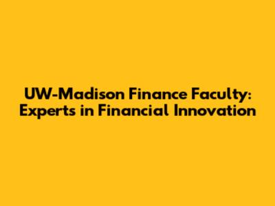 UW-Madison Finance Faculty: Experts In Financial Innovation
