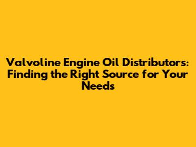 How to Locate Valvoline Engine Oil Distributors