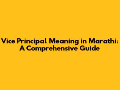 Vice Principal Meaning In Marathi: A Comprehensive Guide