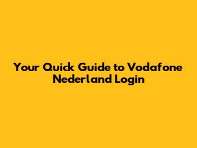Vodafone Nederland Login: Easy Access Guide