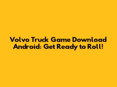 Volvo Truck Game On Android: Your Ultimate Guide