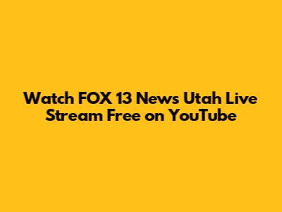 Watch FOX 13 News Utah Live Stream Free On YouTube