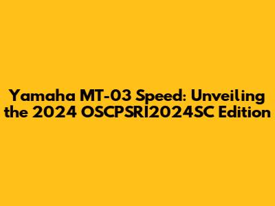 Yamaha MT-03 Speed: Unveiling The 2024 OSCPSRI2024SC Edition