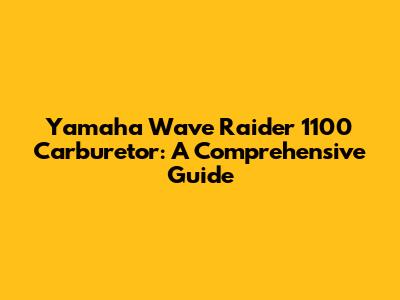 Yamaha Wave Raider 1100 Carburetor: A Comprehensive Guide
