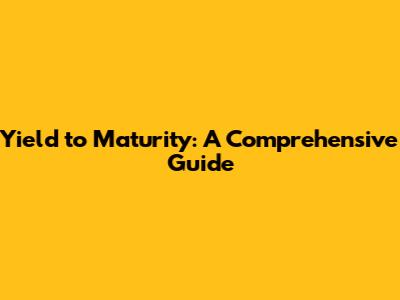 Yield To Maturity: A Comprehensive Guide