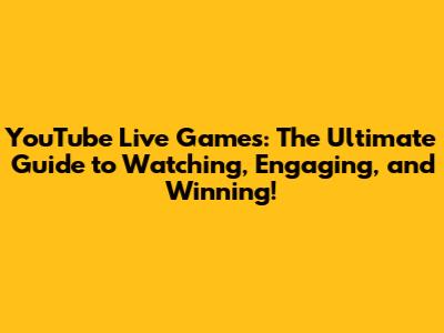 YouTube Live Games: Watch, Engage, And Win!