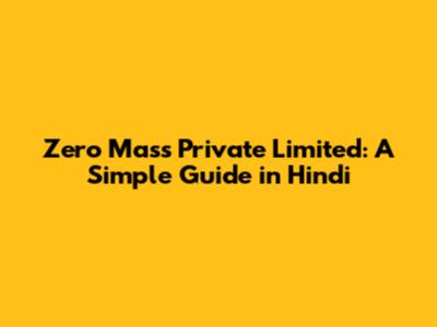 Zero Mass Private Limited: A Simple Guide In Hindi