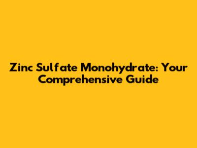 Zinc Sulfate Monohydrate: Uses, Benefits, And Price Guide